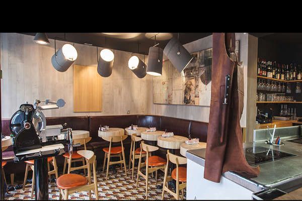 De son côté, le cadre traité dans un esprit boucherie, ne manque pas d'agrément avec ses tables genre billots, son carrelage en mosaïque et une cuisine totalement ouverte sur la salle à manger.